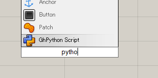 2. Grasshopper の画面上でダブルクリック。検索キーワードとして python と入力。候補に出てくる [GhPython Script] を選択